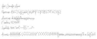 เจนนิเฟอร์ ลินน์ เป็นครอบครัวฟอนต์สคริปต์ที่วาดด้วยมือซึ่งออกแบบมาสำหรับ Windows ที่ผสมผสานความสง่างามเข้ากับสัมผัสที่แปลกประหลาด ฟอนต์นี้มีเส้นที่เพรียวบางและรูปตัวอักษรที่ไหลลื่น สร้างความรู้สึกเหมือนเขียนด้วยมือที่เปล่งประกายความอบอุ่นและเสน่ห์ ครอบครัวนี้รวมถึงแบบมาตรฐานที่ละเอียดอ่อนและแบบหนา มอบความยืดหยุ่นให้กับนักออกแบบในการเน้นโดยไม่สูญเสียความรู้สึกที่เป็นธรรมชาติ ด้วยเส้นโค้งที่นุ่มนวลและความแตกต่างในความหนาของเส้น มันแสดงถึงตัวละครที่มีชีวิตชีวาและเข้าถึงได้ ทำให้เหมาะสำหรับโครงการสร้างสรรค์ที่หลากหลาย